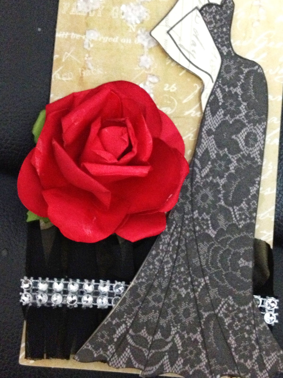 And finally, tag #5 was not part of the swap, but I wanted to share it anyway. I guess I was getting a little tired of all that pale colors, so I decided to add some red to my project. You notice, no pearls, stick pins, or charms.